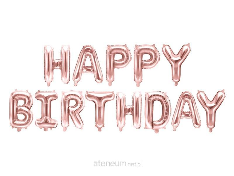 Balon foliowy metalizowany Happy Birthday w kolorze różowego złota, wymiary ok. 340 x 35 cm (134 x 14'').