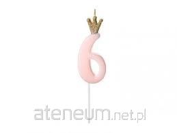 Świeczka urodzinowa Cyferka 6 w kolorze jasnoróżowym, rozmiar ok. 9.5 cm.