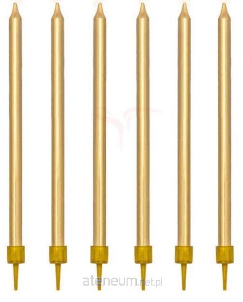 Świeczki urodzinowe gładkie w kolorze złotym metalizowanym, rozmiar ok. 12,5 cm, w zestawie 12 świeczek i 12 podstawek.(1 op. / 12 szt.)
