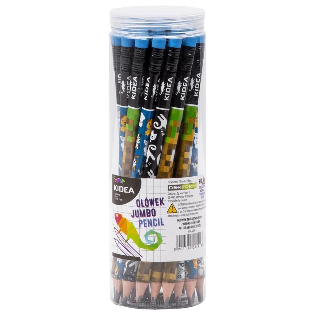 Trójkątne, grube ołówki z zabawnym nadrukiem. Kotki, pieski, szopy, słodkie pandy, gamerski motyw, a może ołówek w super, muzycznym klimacie? Każdy znajdzie wzór idealny dla siebie! To świetna propozycja dla dzieci w wieku wczesnoszkolnym. Rozmiar JUMBO doskonale dopasowuje się do dziecięcej dłoni. Ergonomiczny i trójkątny kształt ułatwia prawidłowy chwyt i zapewnia wygodne użytkowanie. Drewniane ołówki z rysikiem HB zakończone gumką, sprawdzą się doskonale podczas nauki pisania i rysowania. Już od najmłodszych lat ćwicz razem z KIDEA małą motorykę, która jest odpowiedzialna za precyzję ruchów oraz zręczność.