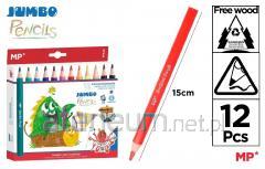 Zestaw 12 dwustronnych kredek ołówkowych. Drewniany, ergonomiczny, trójkątny kształt korpusu o grubości jumbo. Wysokiej jakości, trwałe grafity umożliwiają wielokrotne i łatwe ostrzenie.