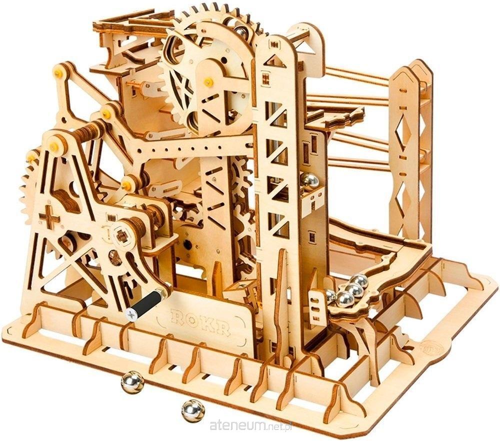 Zestaw do budowy drewnianego toru, na którym metalowe kulki pokonują różnorodne przeszkody. Model napędzany jest ręcznie, poprzez obrót mechanizmu korbowego. Zestaw został wykonany z wysokiej jakości sklejki i ma postać arkuszy z wstępnie wyciętymi i ponumerowanymi elementami, które przed montażem należy oddzielić od wykroju, a następnie połączyć bez użycia kleju, zgodnie z dołączoną instrukcją. Opakowanie zawiera 10 metalowych kulek.
