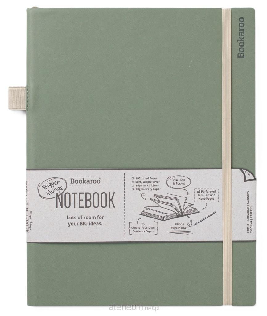 Ozdobny notatnik z elastyczną okładką w linie. W środku znajdują się 192 strony, z czego 8 jest perforowanych, aby można je wyrwać. Dobrej jakości papier, który jest w kolorze kości słoniowej. Notatnik posiada wstążkę-zakładkę, gumkę do zamykania, uchwyt na długopis oraz wewnątrz tylnej okładki kieszeń-kopertę.