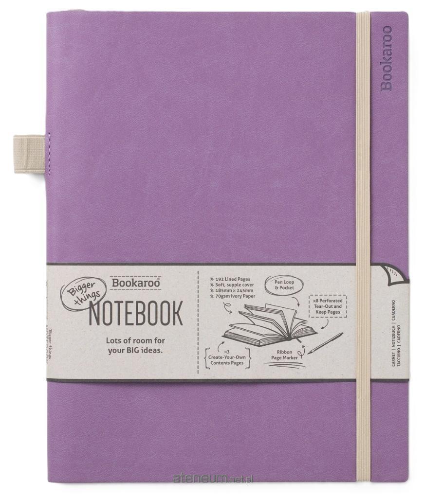 Ozdobny notatnik z elastyczną okładką w linie. W środku znajdują się 192 strony, z czego 8 jest perforowanych, aby można je wyrwać. Dobrej jakości papier, który jest w kolorze kości słoniowej. Notatnik posiada wstążkę-zakładkę, gumkę do zamykania, uchwyt na długopis oraz wewnątrz tylnej okładki kieszeń-kopertę.