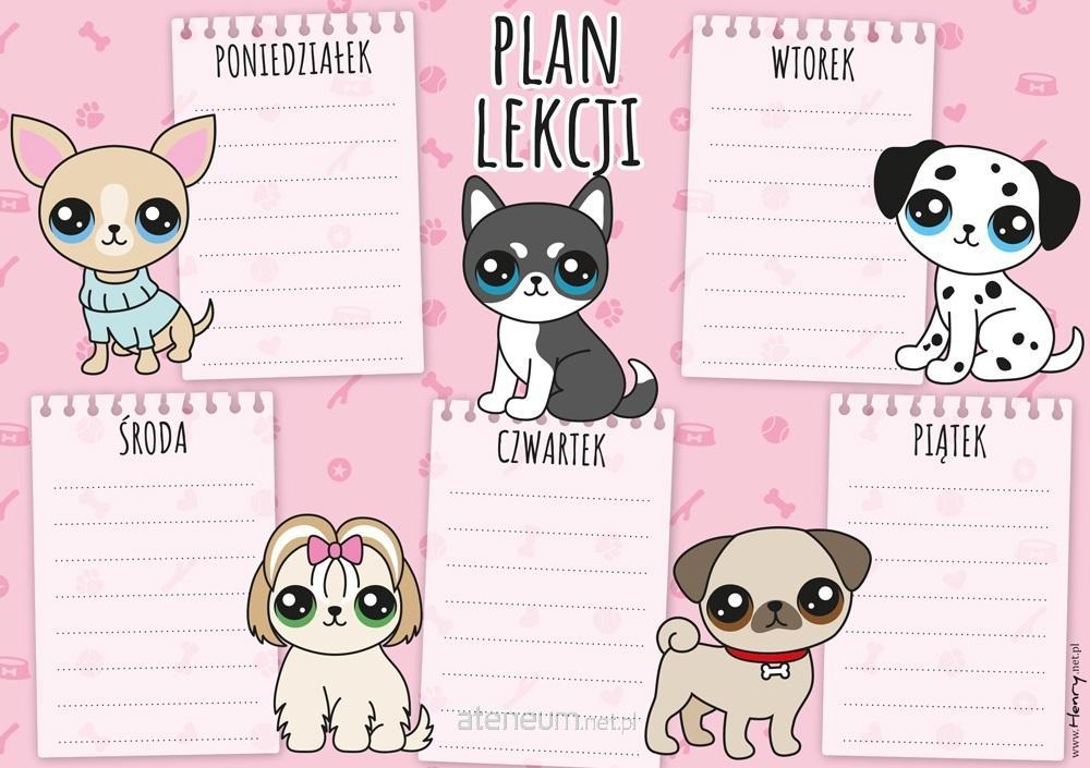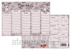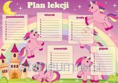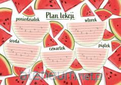 Plan lekcji w formacie A5, na odwrocie wydrukowana tabliczka mnożenia.