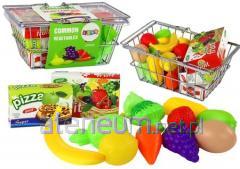 Koszyczek z Warzywami Do Krojenia Waga Sklepowa Przedstawiamy wymarzoną zabawkę każdej małej pomocy kuchennej. Podaruj swojemu dziecku koszyczek skrywający w środku same pyszności - między innymi warzywa i owoce, które w bezpieczny sposób można kroić na połówki, a następnie ważyć i ponownie łączyć ze sobą. Jak to działa? Spieszymy z odpowiedzią. Zestaw składa się z zielonego koszyczka wypełnionego przeróżnymi warzywami i owocami, a także miseczką, talerzykami, nożem, deseczką do krojenia i wagą sklepową. Na przeznaczonej do tego deseczce można rozłożyć artykuły spożywcze i przeciąć je specjalnym nożykiem. Połówki owoców i warzyw można zważyć na wadze, która jest wiernym odwzorowaniem znajdującej się w marketach, a następnie ułożyć na talerzykach lub wymieszać w miseczce. Po zakończonej degustacji w prosty i błyskawiczny sposób połówki warzyw i owoców można połączyć ze sobą. Jak? Wszelkie artykuły spożywcze posiadają specjalne rzepy, umożliwiające wielokrotne rozdzielanie ich oraz łączenie. Barwna, żywa kolorystyka elementów wchodzących w skład zestawu dla pomocy kuchennej, z pewnością przyciągnie oko każdego malucha. Znajdujące się w zestawie elementy pomogą przekonać dziecko do jedzenia zdrowych warzyw i owoców, a także posłużą za pomocne rekwizyty w nauce bezpiecznego korzystania z przyrządów kuchennych. Koszyczek posłuży za idealny pojemnik na zabawki, a czerwone rączki pomogą przenosić go bez ryzyka upuszczenia zabawki. Zestaw składa się z: - warzyw: marchewki, brokułu, papryki, - owoców: kiwi, truskawki, jabłka, winogronu, - wagi sklepowej, - deski do krojenia, - talerzyków, - miseczki, - noża. Wymiary warzyw i owoców: około 5 cm. Wymiary opakowania: 13 cm x 14 cm 14 cm Zabawka została wykonana z atestowanego, bezpiecznego dla dzieci plastiku, posiada certyfikat CE. Ze względu na rozmiar niektórych elementów, zestaw ten polecany jest dla dzieci, które ukończyły 3. rok życia.