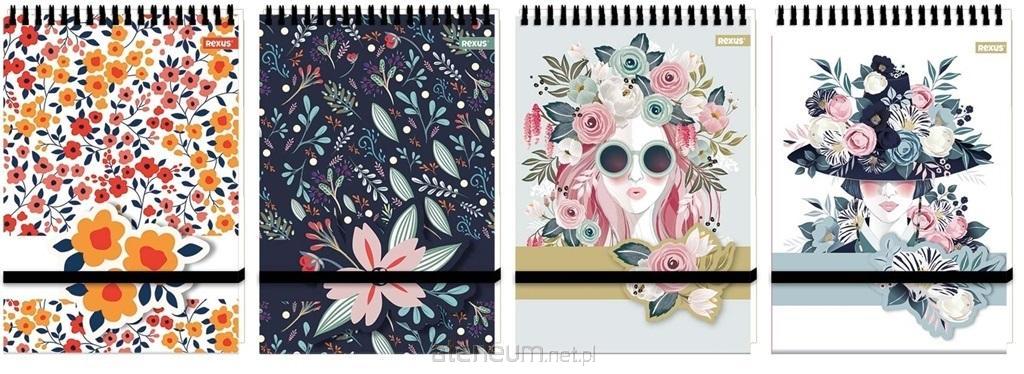 Kołonotes A6, posiada 96 kartek o gramaturze 70 g/m2 w kratkę. Charakteryzuje się estetycznym wykończeniem, modną grafiką Flower na okładce i czarną spiralą. Zamykany na gumkę. Miękka oprawa.