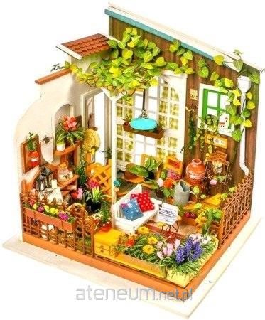 Zestaw umożliwiający złożenie miniaturowego ogrodu z oświetleniem LED. Do budowy modelu wykorzystano między innymi drewno, papier, tkaniny, drut, tworzywo sztuczne oraz różne elementy dekoracyjne takie jak: kolorowe ozdoby, cekiny, koraliki, sztuczne kwiaty oraz wiele innych materiałów. Dodatkowego uroku nadaje całości oświetlenie LED, dzięki któremu ogród może pełnić rolę nastrojowej dekoracji lub lampki nocnej. Opakowanie oprócz czytelnej, obrazkowej instrukcji zawiera także baterie, pędzelek, farby akrylowe, przezroczysty, bezwonny klej oraz pęsetę ułatwiającą montaż małych elementów. Budowa tego modelu pomoże rozwinąć zdolności manualne i przyniesie dużo satysfakcji.