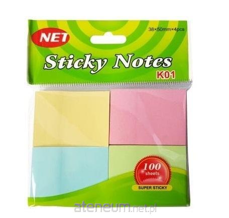 4 x 100 sztuk samoprzylepnych karteczek o wym. 38x50mm w przyjemnych pastelowych kolorach