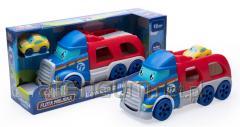 Śmieciarka z dźwiękami i ruchomymi elementami Plastikowe autko z napędem posiada wiele ciekawych funkcji, między innymi efekty świetlne, dźwiękowe i ruchome elementy. Śmieciarka posiada trzy przyciski z dźwiękami, które naśladują odgłos odpalania silnika, klaksonu oraz sygnału ostrzegawczego. Dźwięki te są bardzo realistyczne, dzięki czemu zabawa z pewnością przyniesie dziecku dużo zabawy. W przedniej części pojazdu umieszczone są dwie obrotowe szczotki, wymiatające śmieci z toru jazdy. W przeźroczystej kabinie autka znajduje się kierownica i fotel, a także dwa pedały. Pojazd wygląda jak prawdziwy, zachowano w nim wszystkie najważniejsze elementy. W jego konstrukcji znajdują się lusterka, szczotki, światełko na dachu, a także sprężyny łączące kabinę z tylną częścią pojazdu. Auto osadzone jest na obrotowych, gumowanych kołach, dzięki czemu sprawnie porusza się po różnych nawierzchniach. Zestaw serwisu sprzątającego zawiera: - śmieciarkę, - kosz na śmieci. Kosz na śmieci, który dołączono do zestawu, ma otwieraną klapę. Posiada dwa kółeczka, co ułatwia zabawę. Jego rozmiar i kształt dopasowany jest do otworu w tylnej części pojazdu, gdzie można go przewozić. Kolorystyka zabawki jest bardzo neutralna, składa się z czarnej, szarej i pomarańczowej barwy. Autko wykonano w skali 1:16, co sprawia, że wygląda realistycznie, a ponadto jest bardzo lekkie i wygodne w użytkowaniu. Śmieciarka posiada napęd, co jest jej kolejnym atutem. Zabawka zasilana jest 3 sztukami baterii AG 13, które dołączone są do zestawu. Zapakowana jest w kartonowe pudełko z otwartą witrynką. Ze względu na swój rozmiar przeznaczona jest dla wszystkich dzieciaków powyżej 3. roku życia. Wymiary autka: - 20 cm x 14 cm x 7 cm. Wymiary opakowania: - 30 cm x 18,5 cm x 11,5 cm.