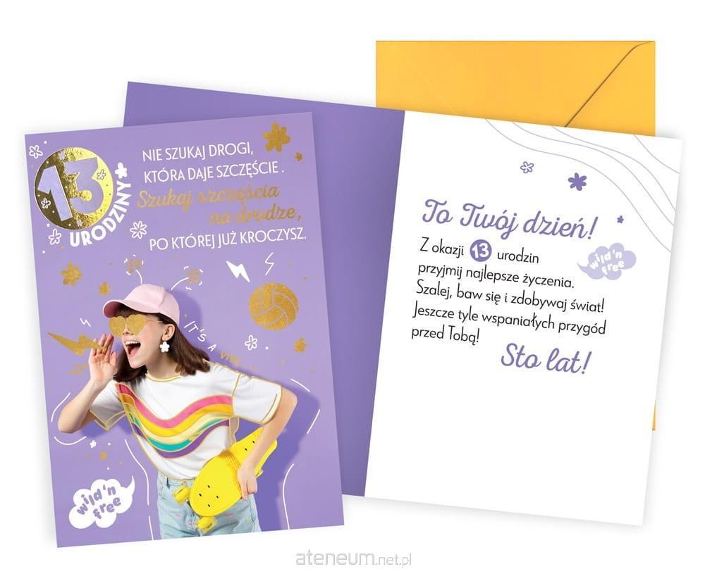 W powiększonym tzw. Angielskim formacie 140x190 mm. Wykonany z niezwykłą dbałością o szczegóły, zdobiony. Wewnątrz znajduje się tekst życzeń, a całość uzupełnia dopasowana kolorystycznie koperta. okazja: Urodziny
