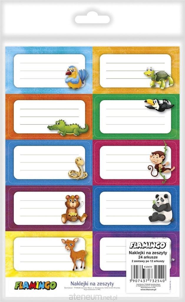 Naklejki na zeszyt kolorowe duże, wymiary: naklejka 38x75 mm, arkusz 230x160 mm, 10 naklejek na arkuszu, w opakowaniu 24 arkusze