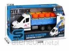 Śmieciarka kosze na śmieci światła dźwięki pomarań