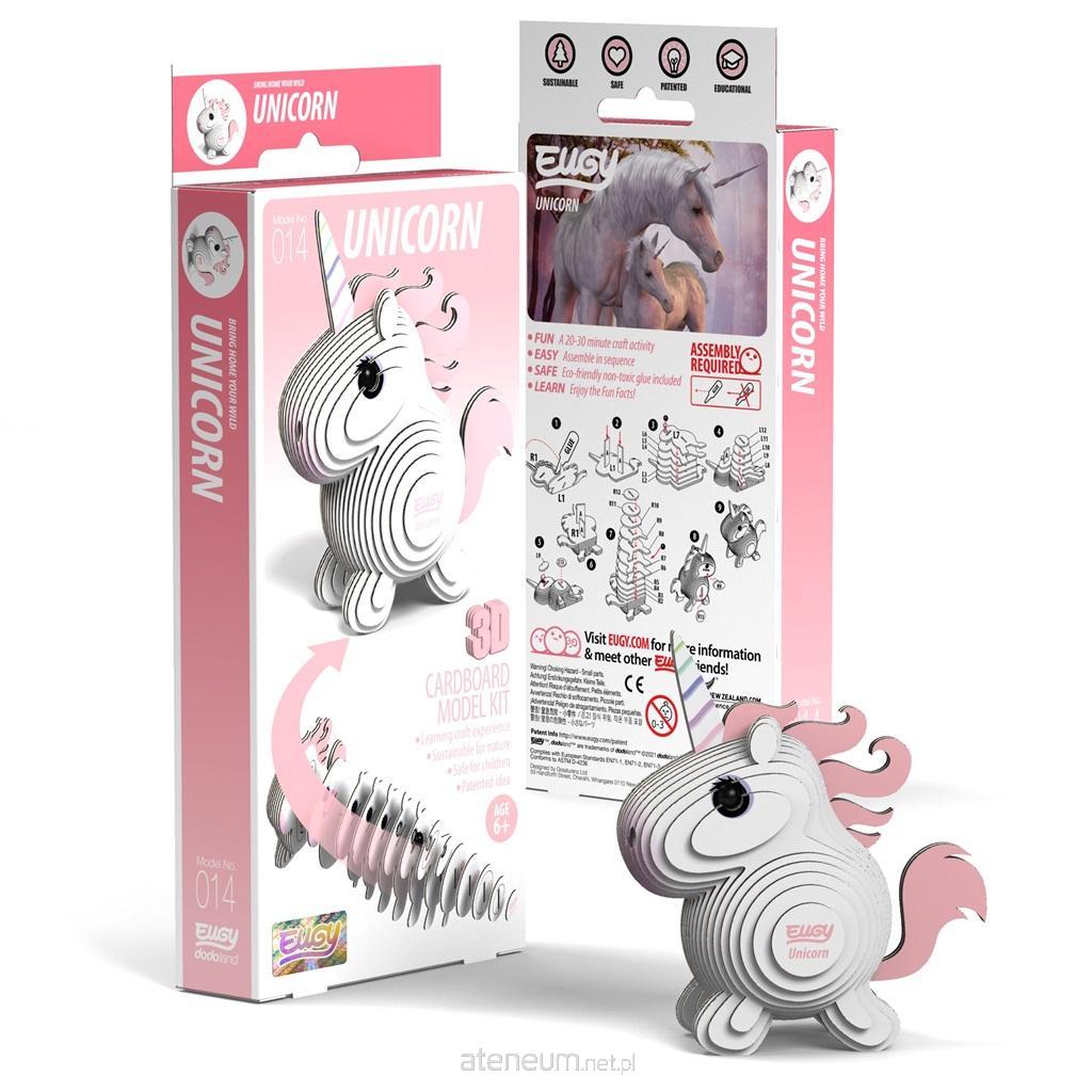 Jednorożec Różowy Eugy Eko Układanka 3D. Eugy zaprojektowane w Nowej Zelandii są wykonane z przyjaznego dla środowiska kartonu pochodzącego z recyklingu i farby na bazie ryżu. Zestaw zawiera ponumerowane elementy układanki, nietoksyczny klej oraz instrukcję do zbudowania ślicznego, magicznego, różowego jednorożca. Zbierz całą serię zwierząt, ptaków, dinozaurów i wiele innych. Dla dzieci w wieku 6 lat +. Jednorożec heraldyczny jest symbolem Szkocji. Legenda mówi, że jednorożec ma moc boskiej prawdy i może przebić serce kłamcy. Słodki jednorożec Eugy ma grzywę "powiewającą" na wietrze, okrągłe kopyta i paski na rogu, które dają efekt spiralności rogu. Jednorożec Różowy Eugy Eko Układanka 3D Eko układanka 3D do samodzielnego złożenia jednorożca. Wykonana z kartonu. Jednorożec ma grzywę powiewająca na wietrze, okrągłe kopytka i "spiralny" róg. Zawiera 28 ponumerowanych elementów, oczka oraz nietoksyczny klej. Rozwija wyobraźnię, planowanie, motorykę. Zestaw zawiera instrukcję do złożenia jednorożca. Dla dzieci w wieku 6 lat +.