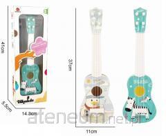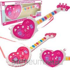 Niebieska gitara elektryczna z mikrofonem i wzmacniaczem Zabawka z rockowym pazurem wykonana jest z wysokogatunkowego materiału w niebieskim odcieniu. Korpus gitarki ozdobiony jest ciekawą, graficzną naklejką oraz ośmioma guziczkami. Przyciski te służą między innymi do włączenia i wyłączenia gitary, a także zmiany piosenek i dźwięków gitary. Plastikowy model instrumentu wyposażony jest w metalowe, czułe na dotyk struny, przypominające te znajdujące się w prawdziwej gitarze. Dziewczęcy pasek dołączony do rockowej zabawki ułatwi małej gitarzystce występy - już nie musisz się martwić, że zabawka upadnie podczas zabawy. Co Twoja gwiazda znajdzie w zestawie? - gitarę, - 6 metalowych strun, - możliwość wyboru tonów, - dźwignię, - 6 melodii demo, - regulację tempa, - regulację głośności, - 4 migające światełka, - pasek, - mikrofon, - statyw, - wzmacniacz. Dołączony do kompletu statyw ułatwia zamontowanie mikrofonu przed dzieciakiem. W prosty sposób można regulować jego wysokość, która może osiągnąć od 65 cm do 109 cm. Zabawkowy mikrofon po podłączeniu do gitary przesyła wokal dziecka do wbudowanego głośnika, z którego następnie wybrzmiewa. Wzmacniacz, tak samo, jak gitara, ma wbudowaną regulację głośności, a także trzy różne porty: na mikrofon, gitarę i odtwarzacz MP3. Dziecięca gitara zasilana jest 4 bateriami typu AA 1.5 V, które nie są dołączone do instrumentu. Przeznaczona jest dla wszystkich dzieci powyżej 6. roku życia. Wszelkie elementy zestawu posiadają certyfikat CE, świadczący o bezpieczeństwie płynącym z zabawy. Zabawka zapakowana jest w wielokolorowe, barwne pudełko. Wymiary gitary: - 72 cm x 24 cm x 4 cm. Wymiary pudełka: - 73 cm x 26 cm x 11 cm.
