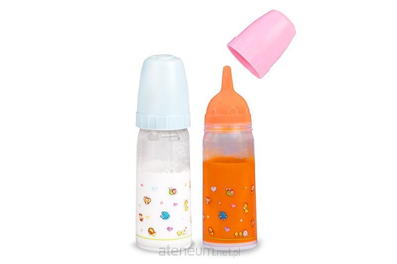 Butelka z mlekiem lub sokiem 14 cm., funkcje: przechyl butelkę a płyn zniknie, ustaw butelkę pionowo, a butelka napełni się. 3+Dwa wzory, towar wysyłamy losowo.