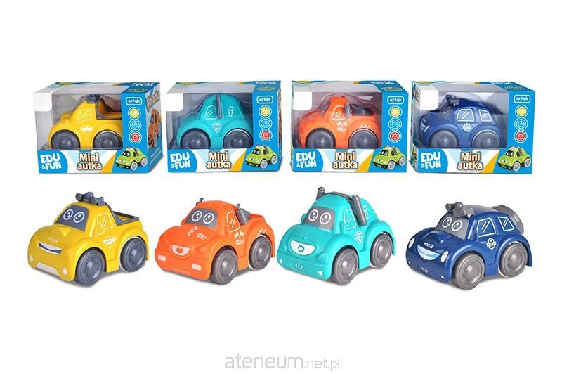 Dł. Auta: 8 cm., 4 wzory: morski garbus, pomarańczowe naprawcze, niebieskie policyjne, żółte policyjne, funkcje: napęd frykcja, wym. Opakowania: 12 x 8,5 x 7,5 cm., 3+