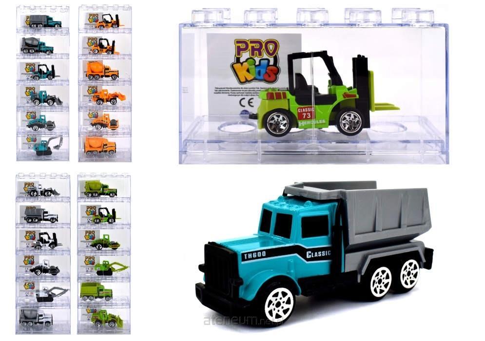 Pojazd budowlany w klocku to idealna zabawka dla małego pasjonata budowy. Pojazd umieszczony jest w przeźroczystym opakowaniu w formie klocka. Pudełko służy zarówno, jako opakowanie zabawki, jak i klocek, dzięki któremu można budować konstrukcje.Transparentne opakowanie-klocek eksponuje pojazd na półce, a asortyment wzorów pozwala zebrać ciekawą kolekcję.Ruchome elementy pojazdów tj. podnoszona winda w widlaku, ruchoma łyżka w koparce, czy gruszka w betoniarce zmieniają prostą zabawę w ekscytujący plac budowy. Dzięki maszynom budowlanym, dziecko może zbudować plac budowy, czy makietę.