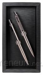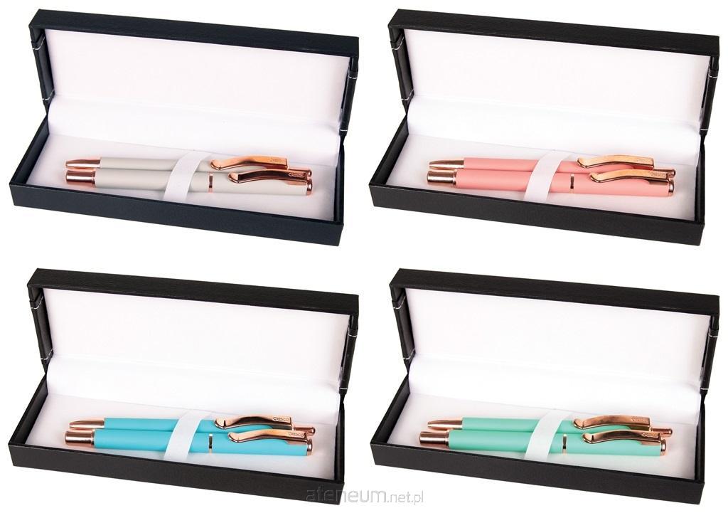 Model zestawu piśmiennego MASTER w atrakcyjnej kolorystyce ze złotymi wykończeniami. Kolekcja obejmuje pióro wieczne ze stalówką irydową oraz długopis. Pióro wieczne ze stalówką irydową zasilane standardowymi nabojami atramentowymi. Długopis posiada pstrykany system wysuwania wkładu wielkopojemnościowego typu Zenith. Komplet zapakowany w eleganckie etui skóropodobne 38.