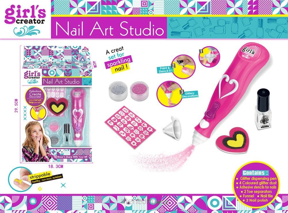 Bezpieczny zestaw z brokatami dla małej manikiurzystki stawiającej pierwsze kroki w świecie ozdabiania paznokci! Bezpieczny lakier bezbarwny mała stylistka może ozdobić przy pomocy brokatu i wzorzystych szablonów uzyskując nietuzinkowy wygląd! Dołączony do zestawu pilnik oraz dozownik brokatów dodają zabawie więcej profesjonalizmu i frajdy!