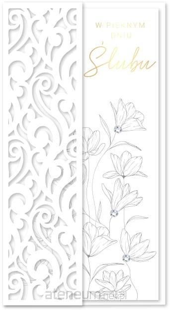 Każda kartka w kolekcji Passion Moments to małe arcydzieło - wyjątkowe i niepowtarzalne, piękne wizualnie. Kartki PM są bardzo bogato zdobione, a jednocześnie skromne i stylowe, cały efekt tkwi w detalach i doskonałym wykonaniu. W zależności od wzoru, na kartkach znajdują się dekoracje ze złotej, srebrnej, perłowej lub holograficznej folii, a także doklejki biżuteryjne, kokardki, brokat, laserowe wycięcia, wstążeczki i inne dodatki. Wnętrze karnetu to zawsze atrakcyjna grafika i tekst życzeń. Kartki mają w komplecie dopasowaną kopertę. Cechy szczególne: zdobienie: przynajmniej dwie folie (metaliczne/perłowe/holograficzne), brokat, elementy doklejane, wycięcia laserowe, wstążeczki - w zależności od wzoru, wnętrze: z delikatną grafiką, wyjątkowe życzenia w środku, w komplecie: dopasowana kolorystycznie koperta, okazja: Ślub Wymiary karnetu po złożeniu: 11,4 x 21,5 cm.