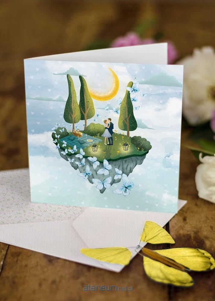 Karnet w formacie kwadratu (15x15cm) z niespodzianką. Po otwarciu karnetu wylatuje z niego papierowy motylek. Wspaniała niespodzianka dla osób poszukujących oryginalnego i efektownego prezentu. Do karnetu dołączona jest instrukcja obsługi. Wyprodukowany na Litwie.