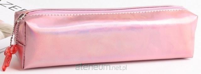 Holograficzny piórnik zamykany na zamek z jedną komorą, przy zamku ozdobna kokardka. Doskonale nadaje się do szkoły.