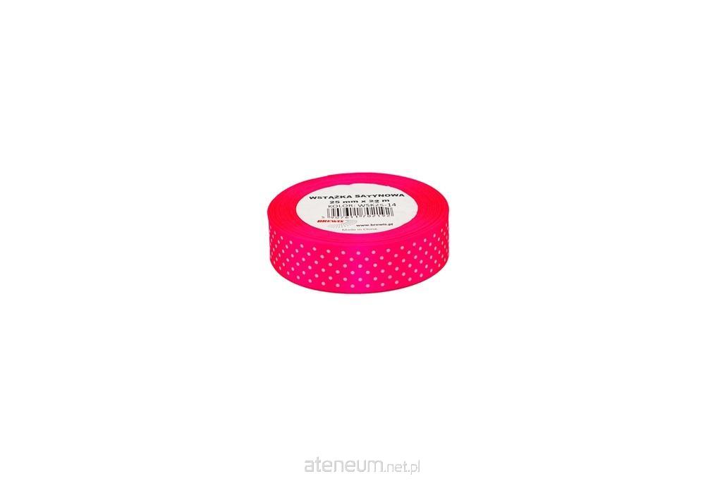 Wstążka satynowa w kropki rozmiar: 25 mm x 22 m kolor: różowy