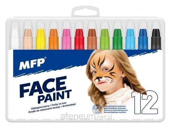 Zestaw 12 szt. kredek do twarzy w sztyfcie (72g). Kredki są nieszkodliwe dla zdrowia i łatwo zmywalne wodą z mydłem.