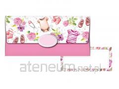 Koperta podarunkowa. Wewnątrz znajduje się ozdobna karteczka, na której można napisać życzenia. Każda koperta jest zapakowana osobno w folię z zawieszką euro.