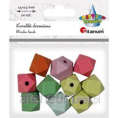 Różnorodny zestaw drewnianych koralików w kilku rozmiarach i kształtach, m. in. kulki, wielościany, baryłki. Koraliki to wszechstronny dodatek do projektów DIY. Z łatwością je pomalujesz, okleisz bądź ozdobisz techniką decoupage._x000D_