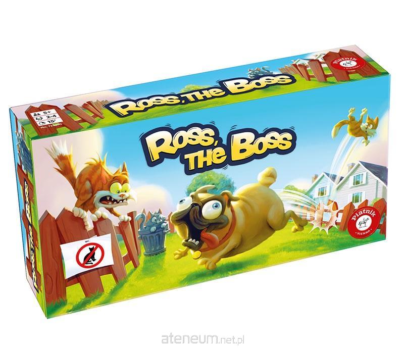 Zwinny, zasilany bateryjnie mops Ross broni swojego terytorium z całych sił. Jeśli zobaczy kota, rzuca się na nim w pościg. Jeśli uderzy w słupek ogrodzenia, kot odleci wysokim łukiem! Jednak po około 12 sekundach Ross traci oddech i zatrzymuje się, aby odzyskać siły i odeprzeć kolejny atak kotów. Jedynym bezpiecznym miejscem, które może chronić koty, są kosze na śmieci, ponieważ Ross nie może ich tam dosięgnąć. Każda osoba może wybrać kota na początku i ustawić go w dowolnym miejscu na płocie ogrodu za punktem startowym. Następnie rzucamy obiema kostkami. Kot porusza się zgodnie z sumą oczek na obu kościach. Jeśli wypadnie liczba i znaczek mopsa, kot przebiega najpierw odpowiednią liczbę kroków, a następnie aktywuje Rossa, który bierze się za przepędzanie kotów! Jeśli znaczek Rossa znajdzie się na obu kostkach, wtedy Ross od razu zabiera się za przepędzanie kotów! Jeśli jeden z kotów przechytrzy Rossa i przedostanie się przez płot do bezpiecznego domu po wykonaniu jednego okrążenia, gra się kończy. Pies Ross zasilany jest trzema bateriami 1,5 V typu AAA (baterie nie są załączone).