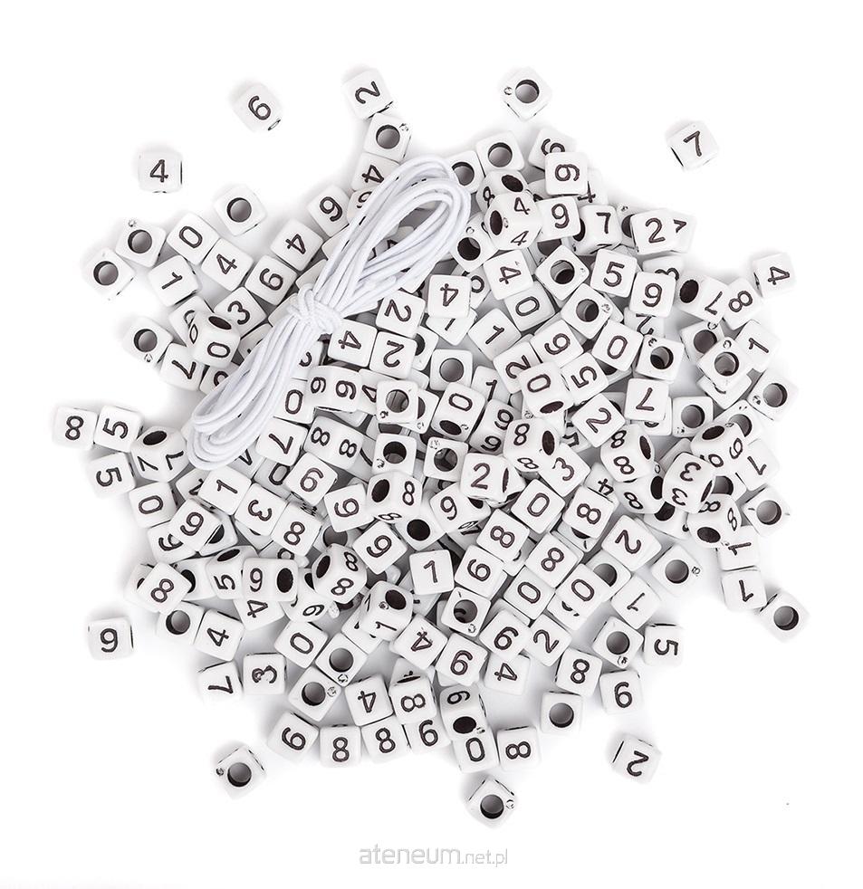 Kwadratowe, białe koraliki z czarnymi cyframi 0-9, pozwolą każdej pracy nadać osobisty akcent.