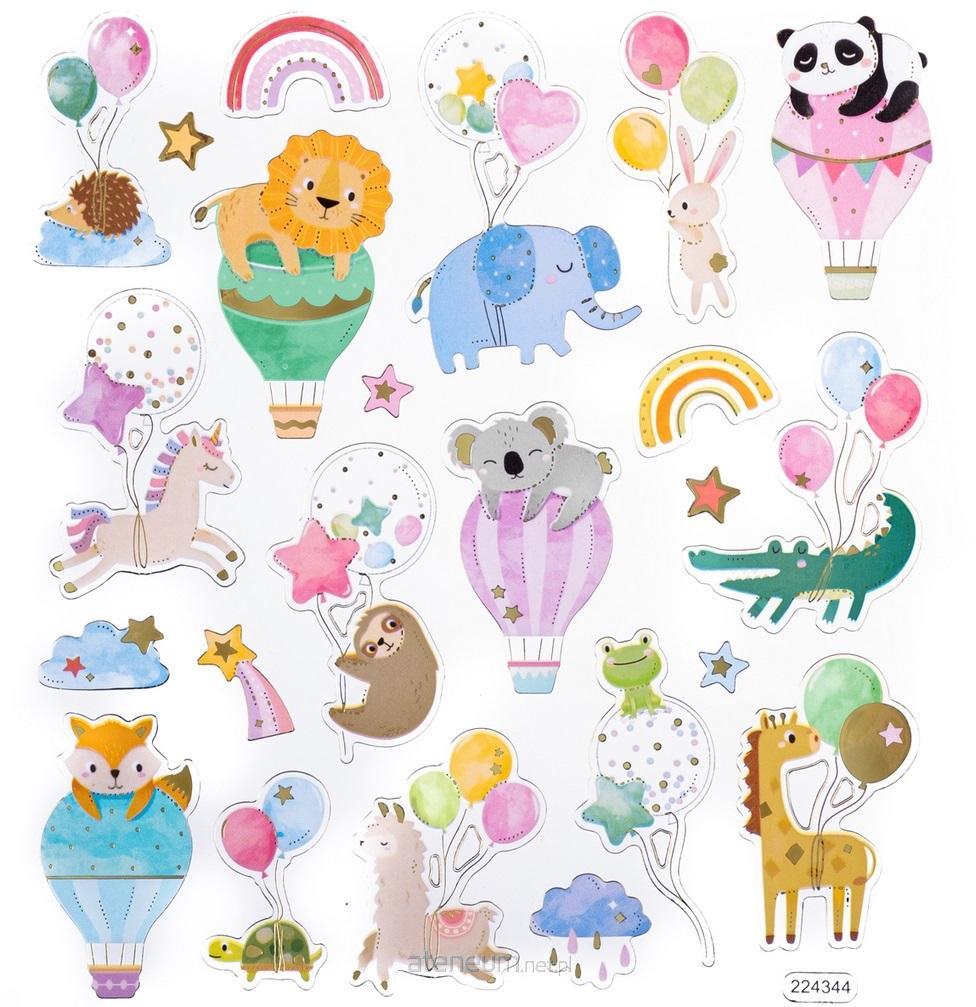 Naklejki z motywem słodkich zwierzątek, baloników, tęczy i gwiazdek z przezroczystej folii wzbogacone złoceniami. Kolorowe naklejki z błyszczącymi na złoto akcentami świetnie sprawdzą się w twórczości dzieci oraz pracach o tematyce dziecięcej. Idealny