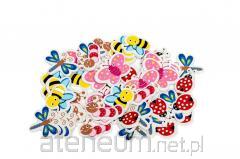 Zestaw naklejek z pianki z kolorowym nadrukiem, z motywami owadów, w kilku różnych wzorach.