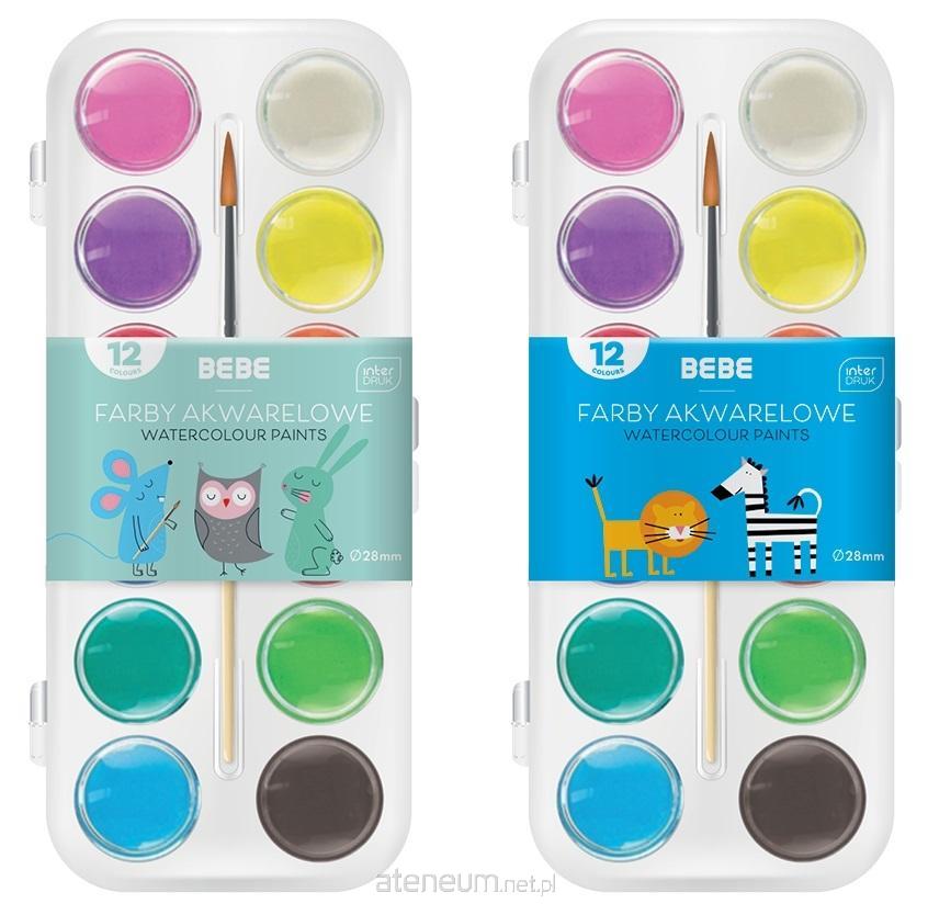 Farby akwarelowe w 12 intensywnych kolorach. Drewniany pędzelek w zestawie. Kolory łatwo mieszają się i rozprowadzają. Wymagają niewielkiej ilości wody. Dwufunkcyjne wieko służy również jako paleta.