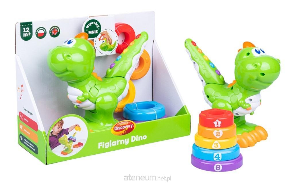 Zabawny dinozaur liczy obręcze w dwóch językach, ucząc przy tym także kolorów! Ten uroczy zwierzak posiada ruchomy ogon, na którym umieszcza się kolorowe obręcze, w kolejności od największej do najmniejszej. Poszczególnym pierścieniom odpowiadają kolorowe kuleczki na dinusiowym ogonie, dzięki czemu maluch bez trudu je dopasuje. Gdy wszystkie obręcze znajdą się już na ogonie dinozaura, wystarczy przycisnąć jego głowę, a zwierzak zrzuci kółeczka z ogonka, aby zabawa mogła się rozpocząć od nowa