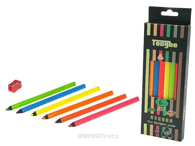 Zestaw 6 kredek trójkątnych, z temperówką; 21x8x1,5cm.