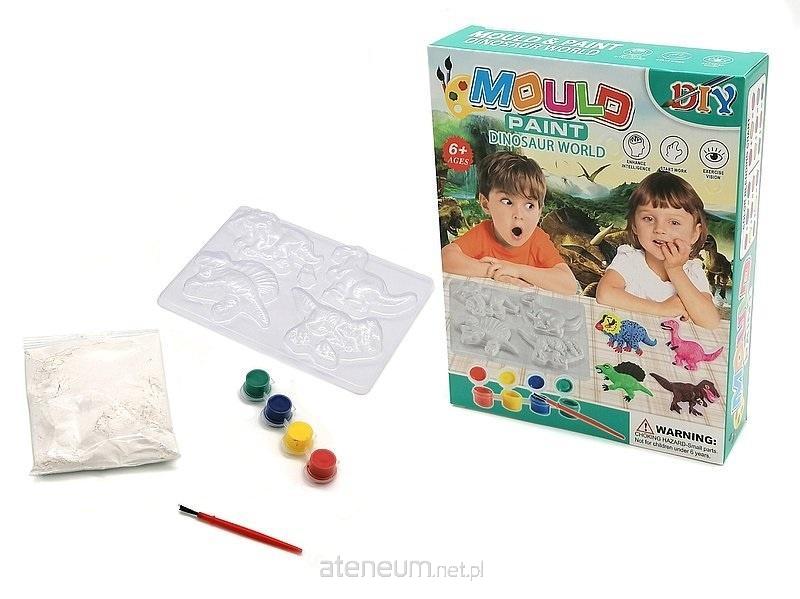 Zestaw do malowania, szablony na figurki gipsowe dinozaurów, farby, pędzelek.