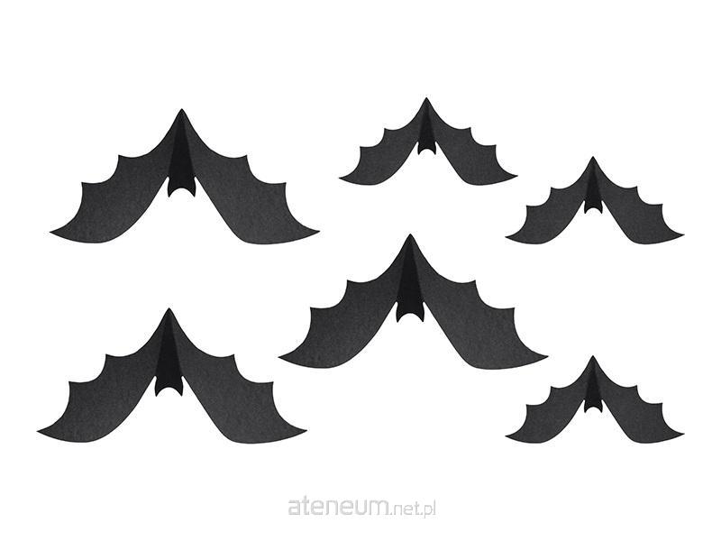 Dekoracja papierowa Nietoperze w kolorze czarnym, zestaw zawiera 6 sztuk, wymiary ok. 19 x 8.7 - 29 x 13 cm.(1 op. / 6 szt.)