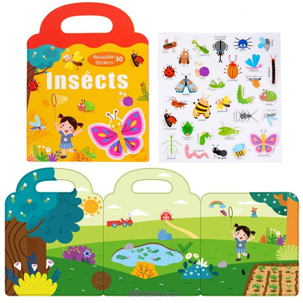 Książeczka z 30 naklejkami insektów, do wypełnienia w środku. Naklejki wielokrotnego użycia.