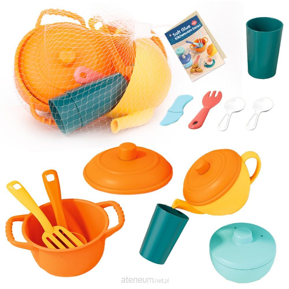 Zestaw zawiera 11 elementów: garnek z pokrywką, czajniczek, dwie szklanki i sztućce. Zestaw z miękkiego tworzywa, dzięki czemu jest jeszcze bardziej bezpieczne podczas zabawy. Wymiary opakowania: 17 x 13 x 11 cm