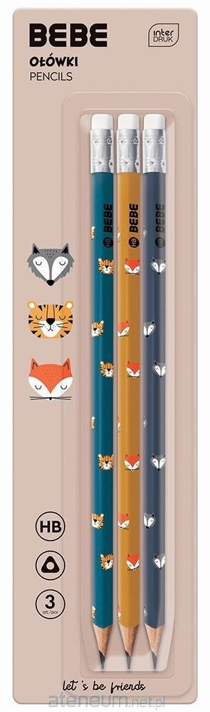 Zestaw 3 ołówków HB. Trójkątny profil. Matowe wykończenie Zakończone białą gumką.