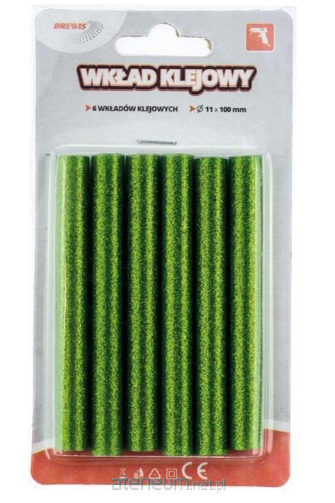 Wkład klejowy brokatowy zielony 11mmx10cm 6 sztuk.