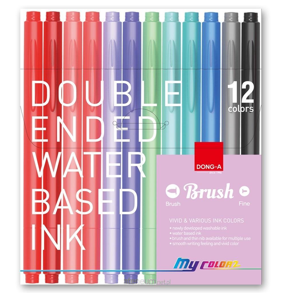 Komplet 12 szt. pisaków w żywych, niegasnących kolorach. Dwie fibrowe końcówki: grubsza 3 mm i cieńsza 1 mm. Uniwersalne zastosowanie, końcówka cienka umożliwia bardzo precyzyjne rysowanie i kolorowanie a grubsza doskonale i szybko koloruje większe elementy. Atrament na bazie wody pozwala na łatwe usunięcie zabrudzeń.