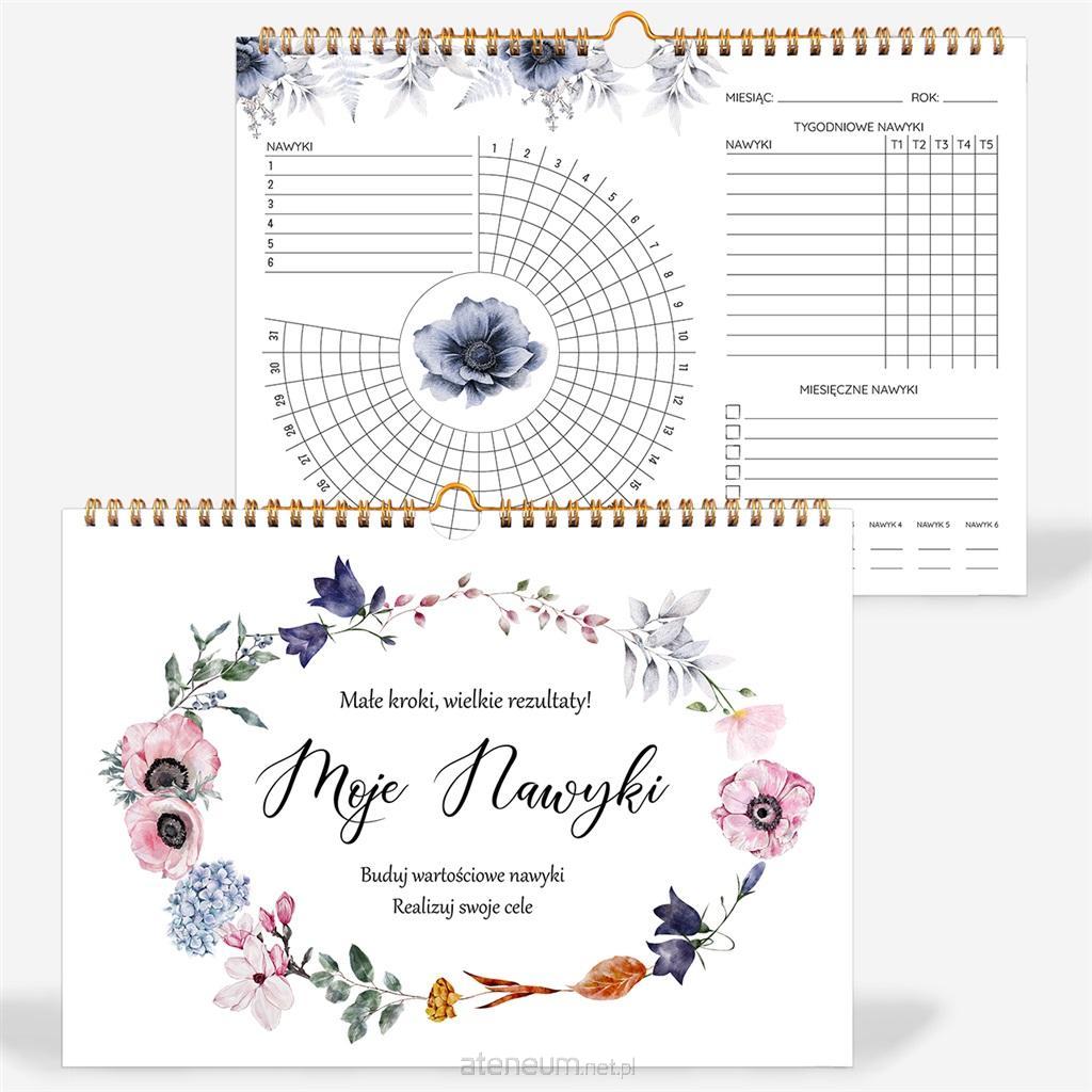 Moje Nawyki to kalendarz wspierający rozwój i kontrolę nawyków. Znany jest również pod angielską nazwą Habit Tracker. Ten planer pomoże Ci w monitorowaniu celów i nawyków w ujęciu dziennym, tygodniowym i miesięcznym Prowadząc kalendarz wizualizujesz swoją drogę do budowy wartościowych nawyków. Spoglądając na planer szybko ocenisz, które cele osiągasz łatwo, a nad czym musisz bardziej popracować. Odznaczanie swoich codziennych sukcesów motywuje do dalszego działania, a ich graficzna forma pozwala zobaczyć progres, jaki został przez Ciebie do tej pory osiągnięty. Układ stron każdego miesiąca pozwala na zapisywanie nawyków dziennych, tygodniowych i miesięcznych. Na dole strony można w łatwy sposób podsumować dni w których udało się zrealizować zaplanowane cele. Cechy szczególne: - Okładka i tylna strona wykonane z grubego papieru o gramaturze 350 g powleczone matową powłoką - 12 stron w kremowym papierze o gramaturze 190g - Minimalistyczny design z dominującym motywem kwiatowym - Spirala w kolorze ciemnozłotym umożliwiająca powieszenie kalendarza - Uniwersalny rozmiar - A4