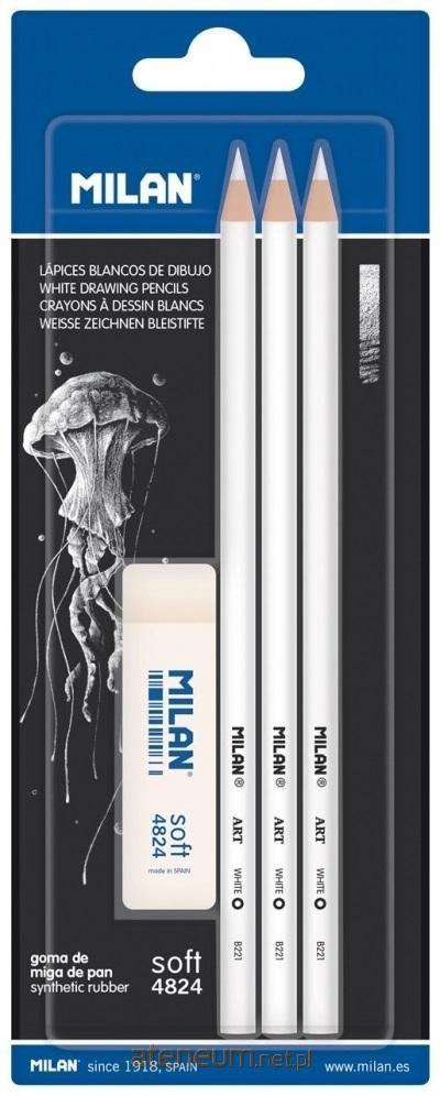 Ołówki biały węgiel z grubym grafitem MILAN 3 szt. na blistrze.