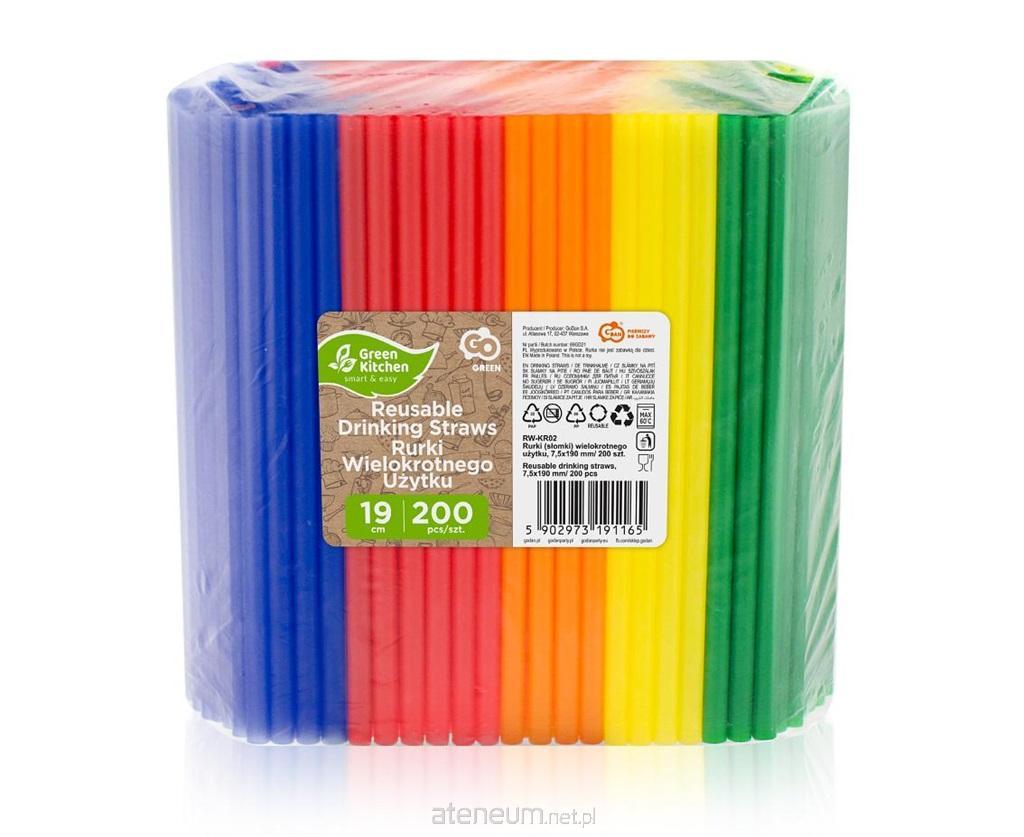 SŁOMKI WIELOKROTNEGO UŻYTKU, MIX KOLORÓW Długość: 19,0 cm Średnica: 0,75 cm Ilość sztuk w opakowaniu: 200 szt