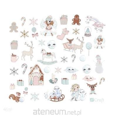 Frosty Pastels to kolekcja, która łączy delikatną, pastelową kolorystykę z zimowymi motywami. Znajdziesz tu sanie, bałwanki, renifery, uroczego konika na biegunach, chatkę z piernika, postać uroczej dziewczynki i wiele innych motywów. W kolekcji Frosty Pastels znajdziesz również naklejki z brokatem, tasiemki, pompony i kwiaty z papieru - wszystko w dopasowanej estetyce.
