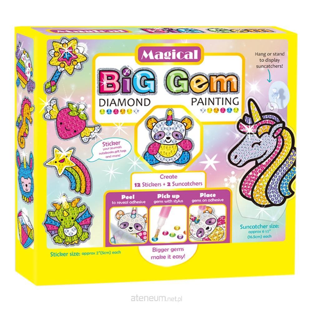 Zestaw zawiera 14 wzorów do wyklejania, woreczki z kolorowymi diamencikami, plastikowy patyczek do nakładania diamencików, kostka do woskowania patyczka, stojaczki, przyssawki. Wymiary opakowania: 25 x 25 x 5 cm.
